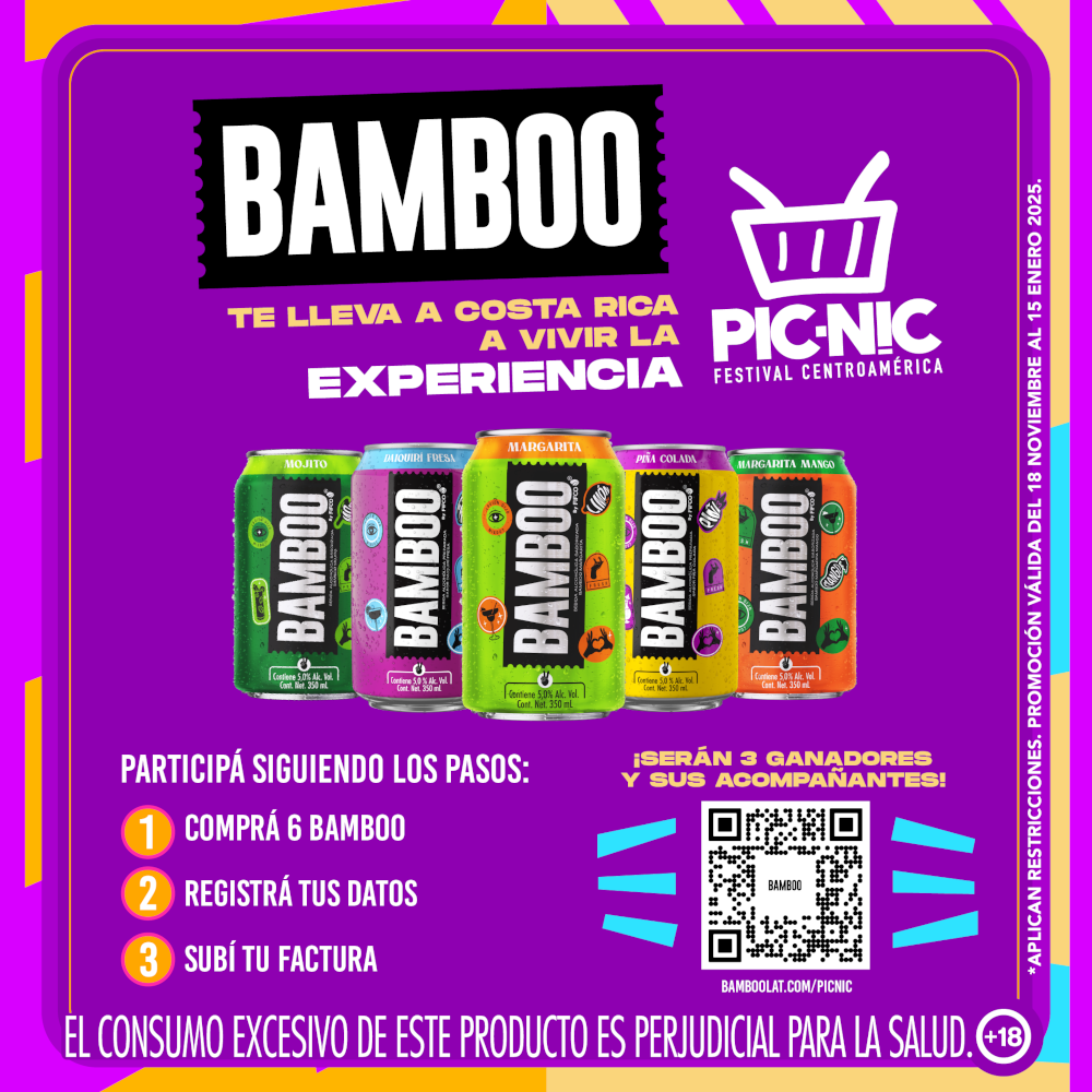 Como parte de su propuesta de valor en este cierre de año 2024, la marca lanza la promoción “BAMBOO TE LLEVA A VIVIR LA EXPERIENCIA PICNIC 2025 A COSTA RICA”, la cual tiene como objetivo premiar la fidelidad y preferencia de sus consumidores, otorgando la posibilidad a los participantes de ganarse uno de los 3 viajes doble con todos los gastos pagados al festival más grande de la región centroamericana, Picnic Music Festival 2025 que se realizará en Costa Rica el 15 de febrero del 2025.